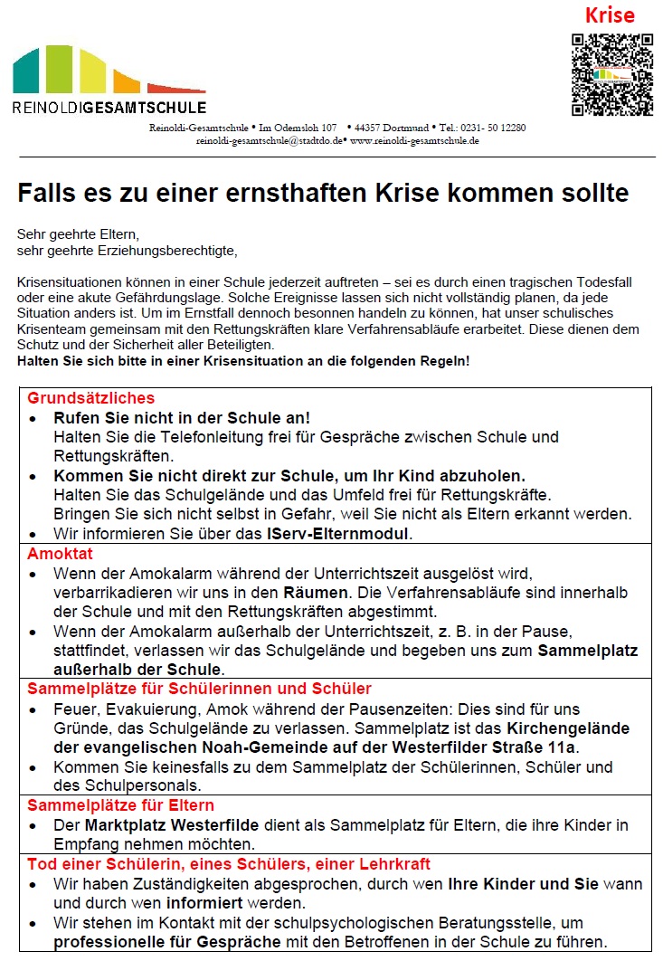 Verhalten in einer Krise- eine Information für Erziehungsberechtigte und Angehörige