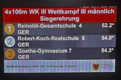 Wieder sehr erfolgreich: Unsere Leichtathletikmannschaft schaffte beim Staffellauf den ersten Rang. Die Jungen-Fußballmannschaft U13 erkämpfte sich den zweiten Platz unter den Dortmunder Schulen.